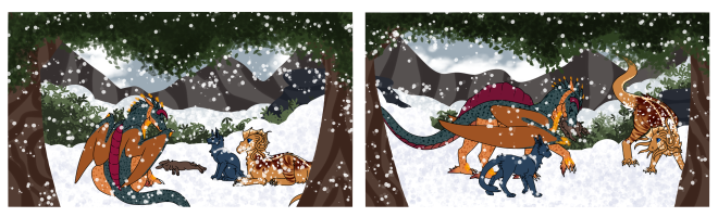 Below, dragons gathered to witness the rainbow geysers.